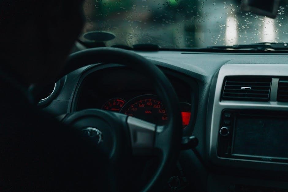 This section provides immediate guidance for emergency scenarios‚ ensuring your safety and the safety of others. It includes steps for accidents‚ breakdowns‚ and system malfunctions. Key procedures‚ such as contacting emergency services and using hazard lights‚ are highlighted. Additionally‚ it covers how to respond to dashboard warning lights and critical system failures. Tips for staying calm and prioritizing safety are emphasized. Refer to this guide for quick access to essential information‚ helping you handle unexpected situations with confidence and efficiency. Always keep this reference handy for peace of mind while driving.