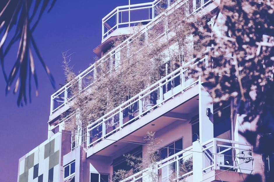 Bamboo is a sustainable, versatile material used in architecture for its strength and aesthetic appeal. It’s ideal for tropical climates and featured in PDF guides for modern design inspiration.