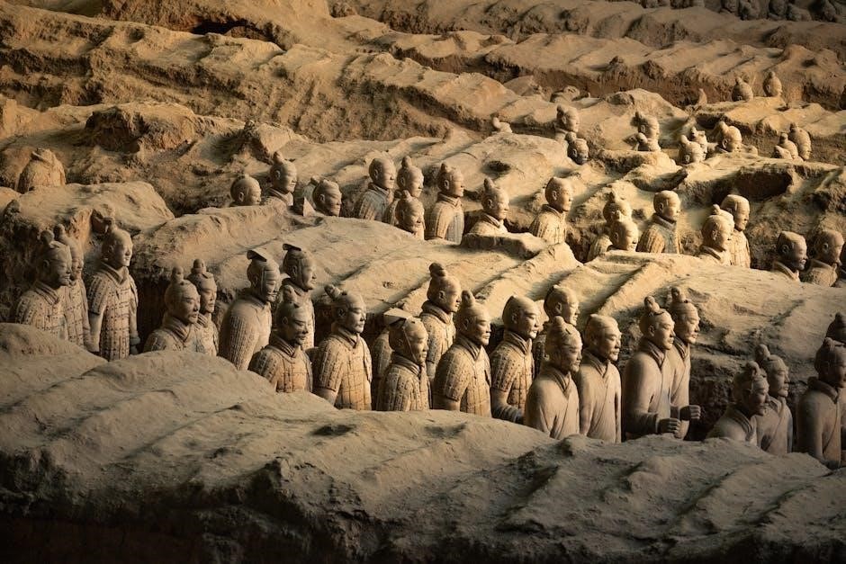 Dynasty Warriors 9 features 44 trophies: 1 platinum, 2 gold, 16 silver, and 25 bronze․ The platinum trophy, “True Warrior,” requires completing all other achievements, with a focus on kills, levels, and exploration․ Secret trophies add an extra challenge, rewarding specific in-game actions and discoveries․ This breakdown provides a clear overview of the trophy distribution, helping players plan their journey to 100% completion effectively․