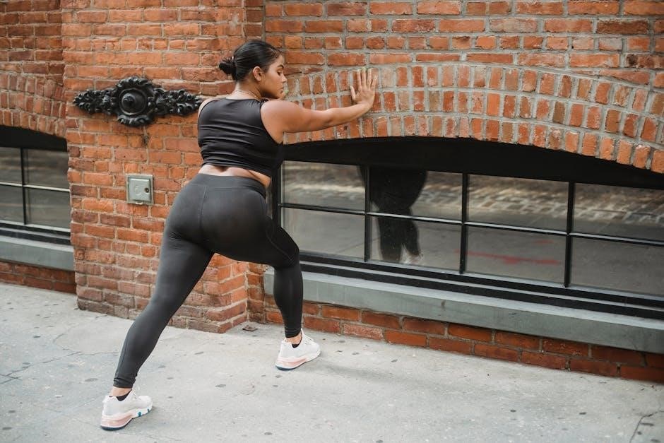 Modify stretches to suit individual fitness levels by adjusting intensity and duration. For beginners‚ use seated or kneeling positions to reduce strain. Advanced individuals can deepen stretches or add resistance bands for greater challenge. Props like walls or stability balls can assist those with limited mobility. Focus on controlled movements and breathing to maintain form and prevent injury. Adjustments ensure stretches are accessible and effective for all‚ promoting progress without overexertion. Tailor routines to personal goals and physical capabilities for optimal results.