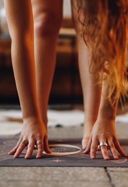 The seated forward fold stretch targets the latissimus dorsi muscles‚ promoting relaxation and flexibility. Sit on the floor with legs extended‚ then reach forward toward your toes. Keep your knees slightly bent if necessary. Hold for 20-30 seconds‚ breathing deeply. This stretch helps relieve tension in the lower and upper back‚ improving posture and reducing muscle tightness. Regular practice‚ as outlined in the latissimus dorsi stretches PDF‚ can enhance mobility and overall comfort‚ making it an excellent addition to daily routines.