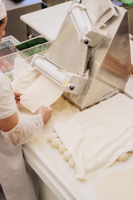 Ensure safe operation by following these guidelines․ Place the machine on a stable, heat-resistant surface, away from flammable materials․ Keep children away while in use․ Avoid touching hot surfaces or opening the lid during operation․ Unplug the machine when not in use or before cleaning․ Use oven mitts to handle the bread pan․ Never immerse the machine in water or expose it to extreme temperatures․ Follow voltage and power requirements to prevent damage․ Regularly clean the machine to avoid dough residue buildup․ Always adhere to the manual’s instructions to ensure safe and efficient bread making․