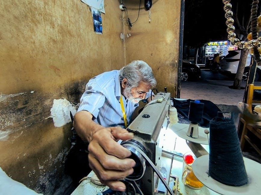 Regular cleaning and oiling ensure optimal performance. Refer to the manual for troubleshooting common issues like thread jams or needle breakage. Proper care extends machine longevity.