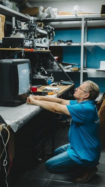 Diagnosing electrical system issues in the Tennant T7 involves checking power supply, circuit breakers, and wiring connections․ Inspect for blown fuses or tripped breakers․ Use a multimeter to test voltage at key components like the vacuum fan and solution flow pump․ Consult the service manual for specific electrical diagrams and troubleshooting steps․ Common issues include faulty relays, damaged sensors, or loose connections․ Always ensure the machine is powered off before performing electrical diagnostics to avoid safety risks․ If unresolved, contact Tennant support for professional assistance․
