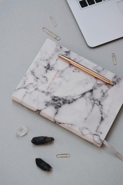 The Five Minute Journal in Spanish is available as a printable PDF, offering users the flexibility to create a physical copy. This version is designed to be easily printed from home or at a local print shop, ensuring accessibility for those who prefer a tactile journaling experience. The PDF format maintains the journal’s layout and design, preserving its structure for a seamless transition from digital to physical use. Users can print individual pages or the entire document, depending on their needs. This feature is particularly useful for individuals who enjoy writing by hand or prefer to keep a hard copy for personal reflection. The printable option complements the digital version, providing a versatile way to incorporate the journal into daily routines and enhance mindfulness practices.